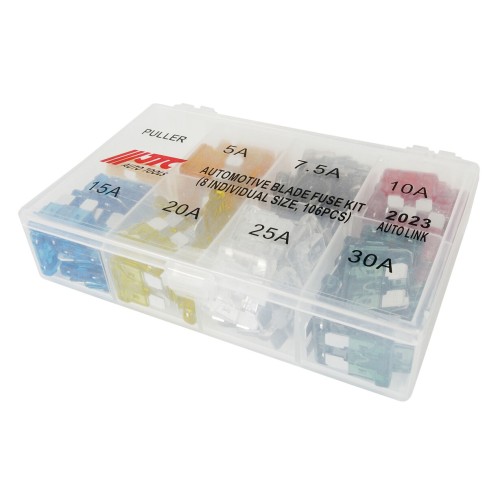 JTC-2023 - Предохранитель 5-30А плоский 106шт. в боксе JTC - _x000D_ В комплекте:_x000D__x000D__x000D_ _x000D_ Размеры: 5 А, 7.5 А, 10 А, 15 А, 20 А, 25 А, 30 А х15 шт. каждого размера._x000D_ Съемник - 1 шт._x00...