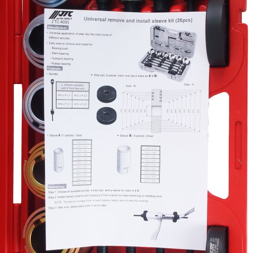 JTC-4091 - Набор инструментов для демонтажа/монтажа сайлентблоков внутр. d=34-72мм универсальный 26 пр. JTC - _x000D_Универсальный набор используется для снятия и установки сайлентблоков и резиновых втулок._x000D_Общее к...