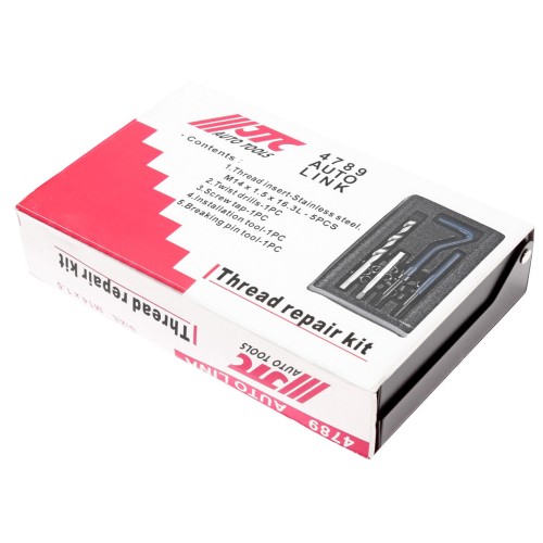 JTC-4789 - Набор инструментов для восстановления резьбы (вставки М14х1.5, L=21мм, 5шт.) 9 предметов JTC - _x000D_ В комплекте 9 предметов_x000D_ В комплект входят: сверло, метчик, установочный инструмент, инструмент для ...