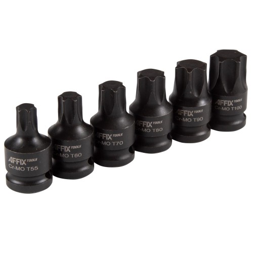 Набор ударных торцевых насадок 1/2", TORX, Т55-Т100 мм, L = 44 мм, 6 предметов AFFIX AF00742006C