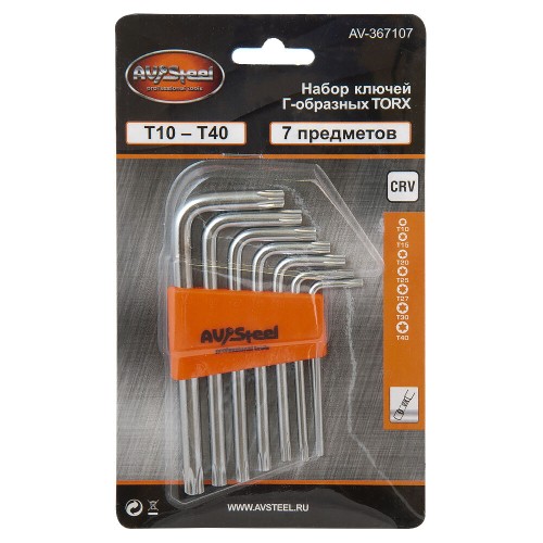 • Набор ключей Г-образных TORX T10-T40 "AV Steel" 7 предм. AV-367107