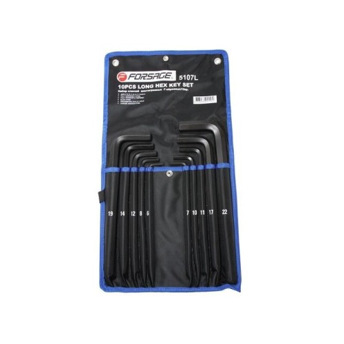 • Набор ключей Forsage Г-образных 6-гранных длинных 10пр. (6, 7, 8, 10, 11, 12, 14, 17, 19, 22мм) на