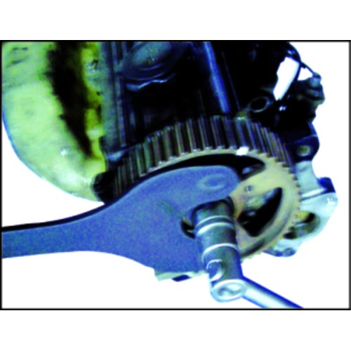 Фиксатор имеет упорные штифты с канавками (бороздками), которые предназначены для фиксации шкива распределительного вала в неподвижном положении при откручивании центрального болта вала._x000D_