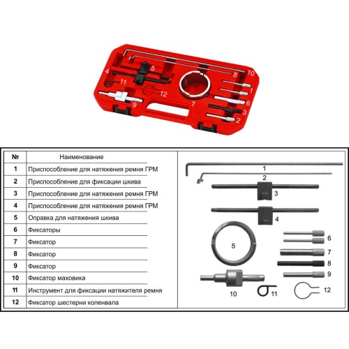 JTC-4845 - Набор инструментов для обслуживания дизельного двигателя (PEUGEOT CITROEN)11 предметов в кейсе JTC - Комплектация _x000D__x000D_Приспособление для натяжения ремня ГРМ. ОЕМ 0189S2._x000D_Приспособление для фикс...
