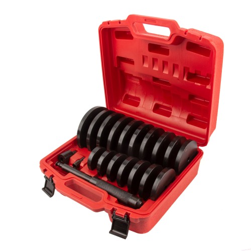 Набор оправок из 16 предметов для извлечения и замены обойм подшипников, втулок и сальников. Размер дисков: от 70 до 150 мм с шагом 5 мм.