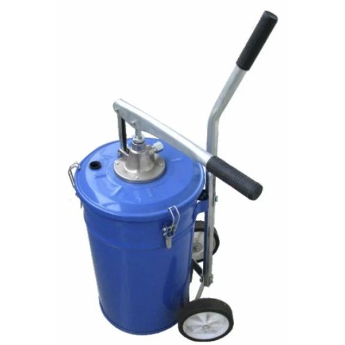 Ручной солидолонагнетатель предназначен для подачи густых пластичных смазок к узлам и агрегатам. Емкость бака 20 литров. Для удобства перемещения оснащен колесами.